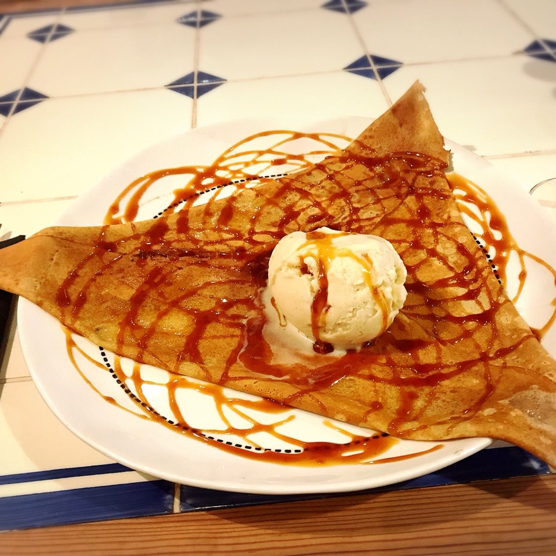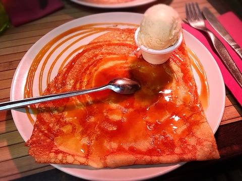 このお店はクレープも、バターに浸したような、驚くビジュアルのものが出てきたのですが…
