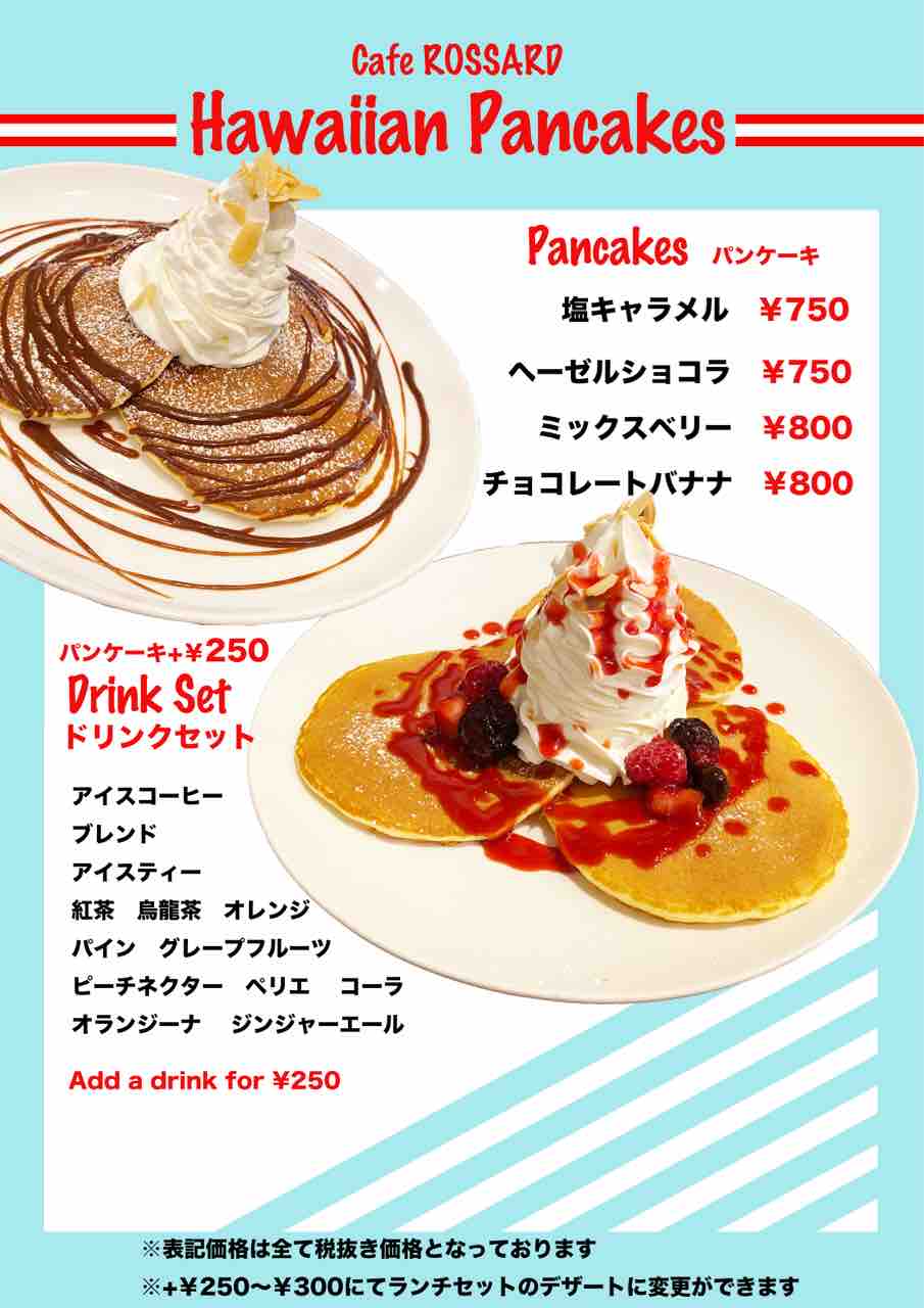 ドリンクセットを作ったのでパンケーキのみのご利用もぜひどうぞ!
