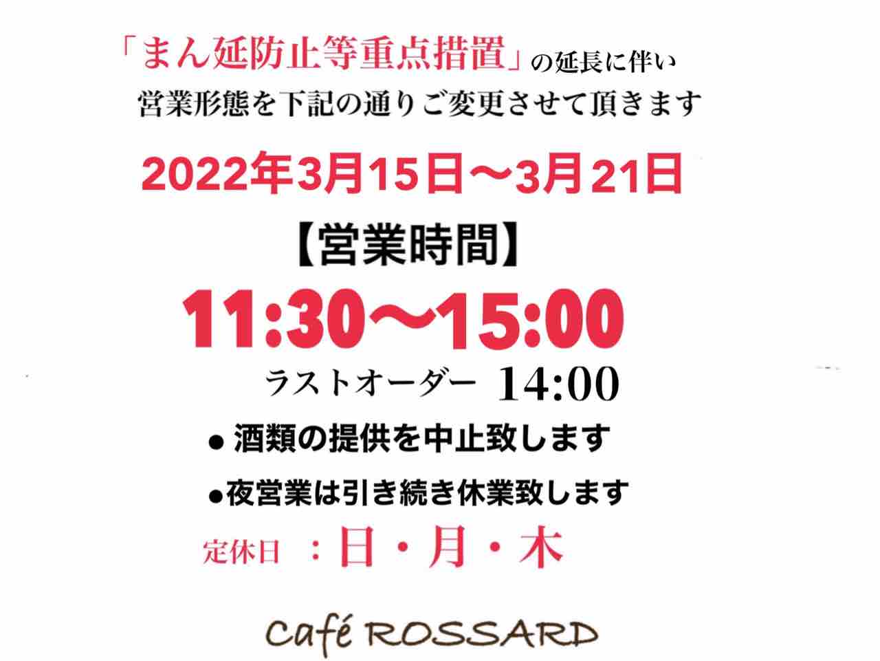 3/30(水) ランチ営業 11:30〜15:00