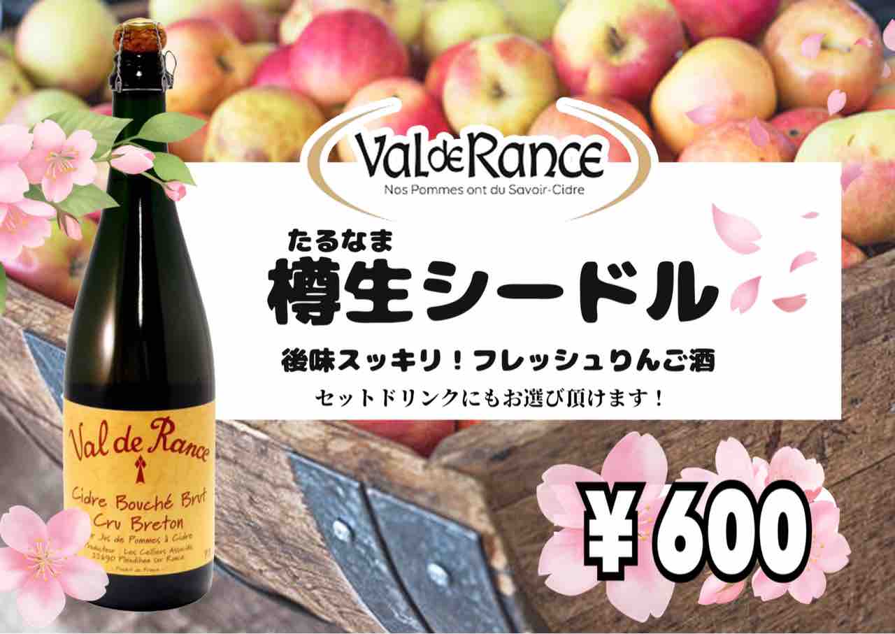 しばらくの間お店にも置こうと思っておりますので、期間限定ではありますが稀少な「樽生シードル」をぜひお試しください✨
