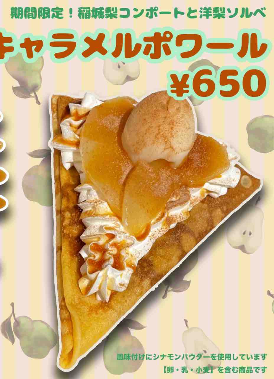 キャラメルソースではなく、梨シロップをたっぷり吸わせたフレッシュ仕様なクレープです。