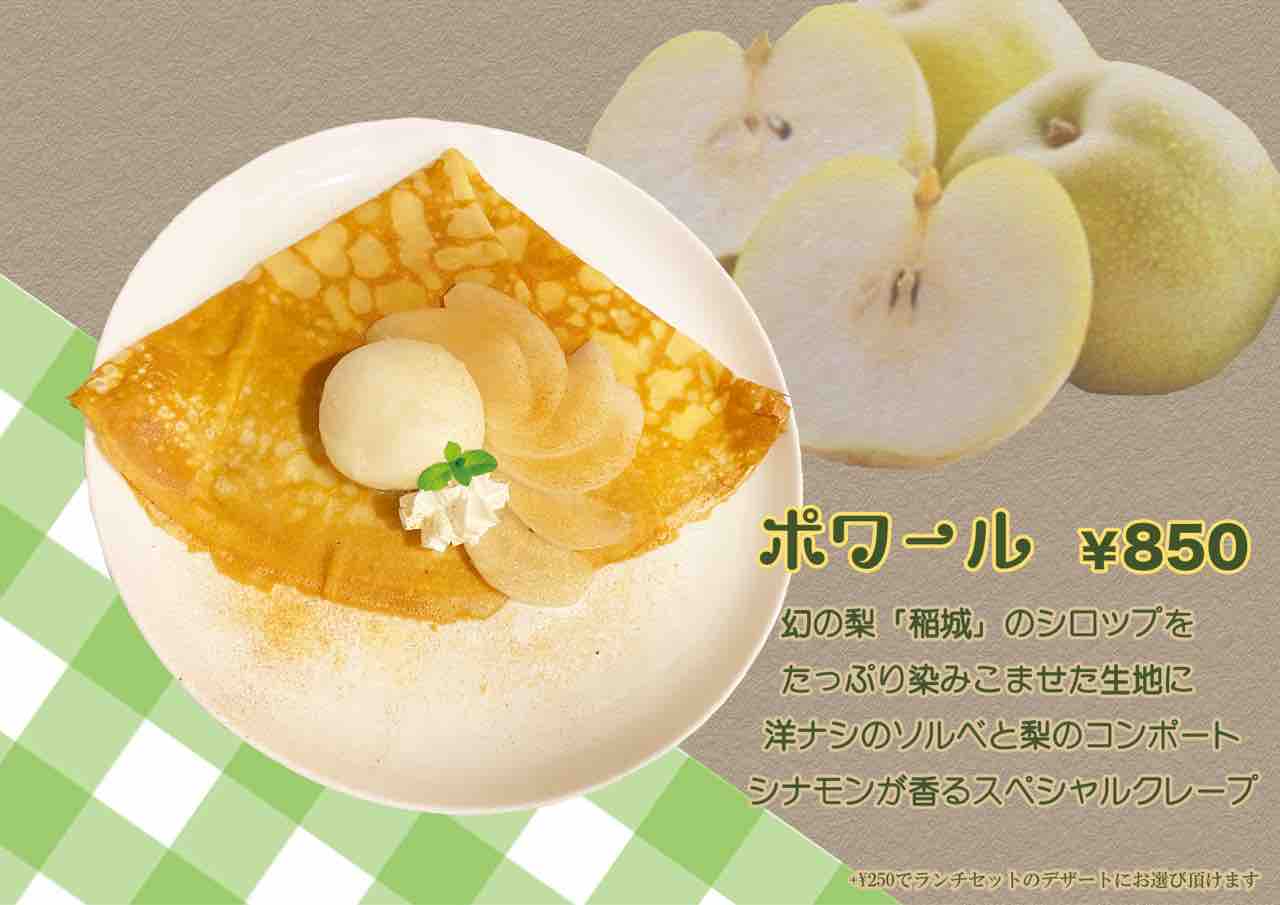 店舗では期間限定クレープ「ポワール」を販売しております。
